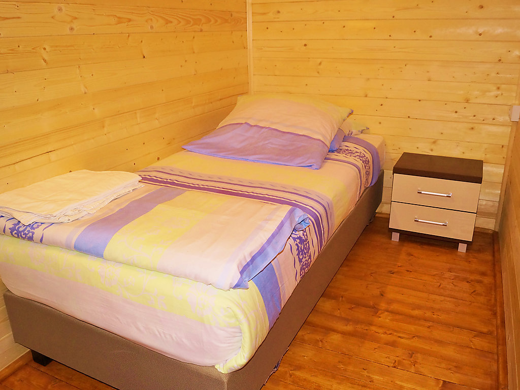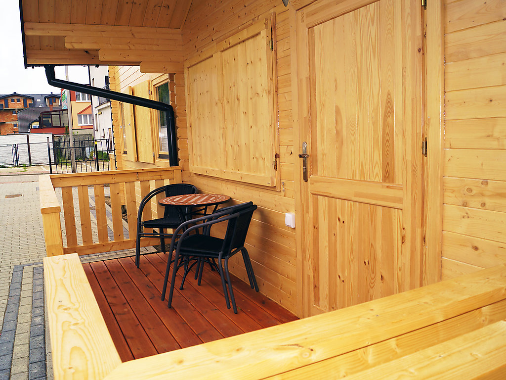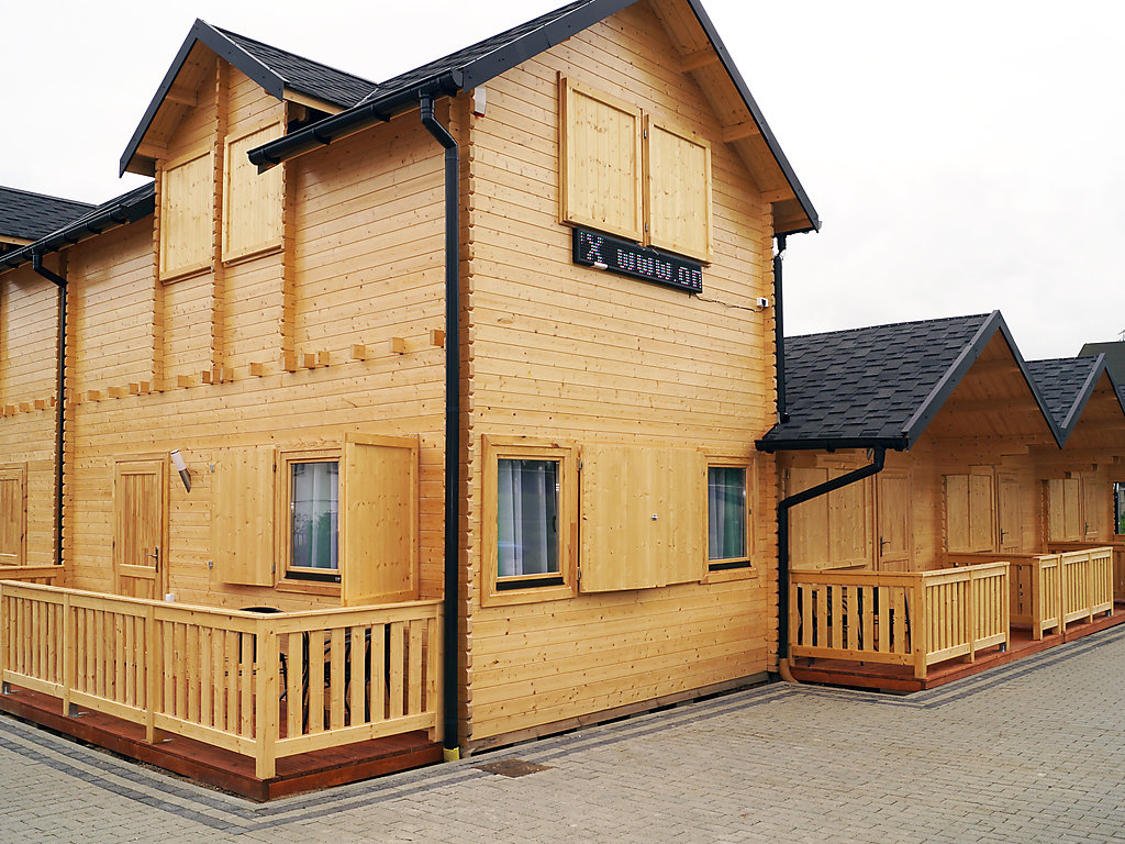 "Mielno - domek piętrowy", 3-pokojowy bungalow 48 m2 na 2 poziomach. Otwarty salon/jadalnia z 1 dwuosobową kanapą i TV z płaskim ekranem. Wyjście na taras. Kącik kuchenny (2 palniki – kuchenka z płytą ceramiczną). Prysznic/WC. Bojler (40 litrów). Na piętrze: 1 pokój z 2 łóżkami (80 cm, o długości 200 cm). 1 pokój z 1 łóżkiem podwójnym. Do dyspozycji: Internet (bezprzewodowy LAN [WLAN]). Max. 1 zwierzak/pies.