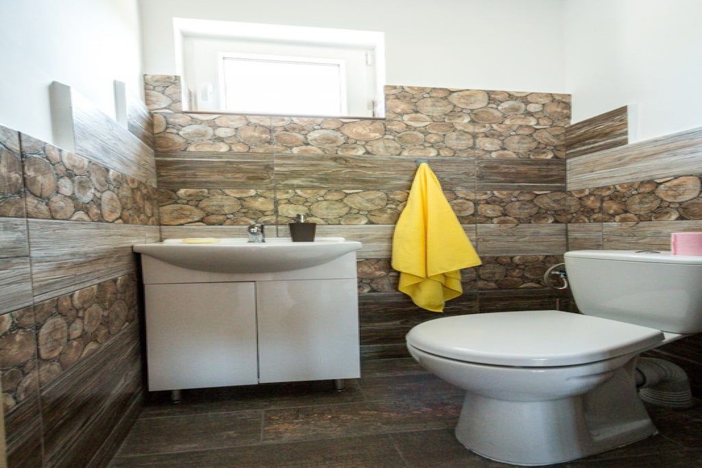 Na 1 piętrze: (sypialnia(łóżko 1-osobowe, łóżko 1-osobowe składane, łóżko 2-osobowe), sypialnia(2x łóżko 1-osobowe, łóżko piętrowe), sypialnia(łóżko 1-osobowe, łóżko 2-osobowe lub 2x1-osobowe łóżka), łazienka(prysznic), toaleta)